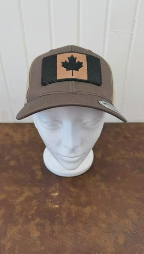 Canadian Flag Leather Patch Tucker Hat Khaki